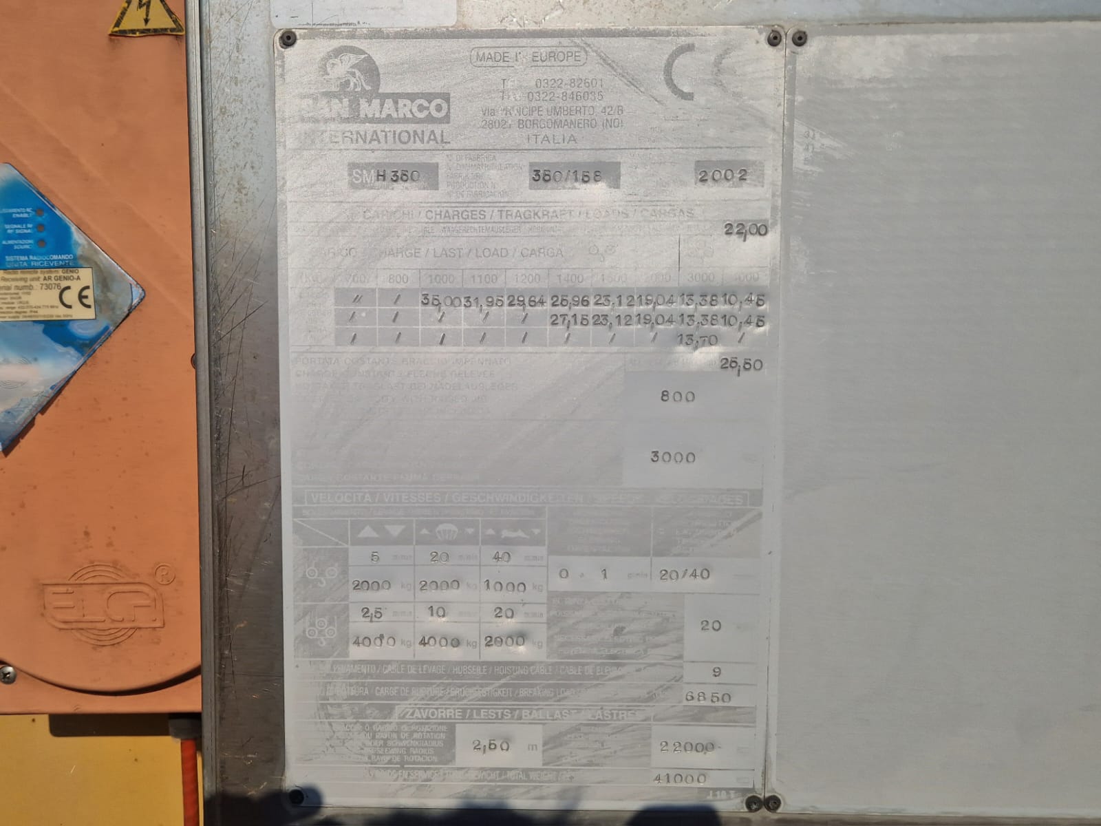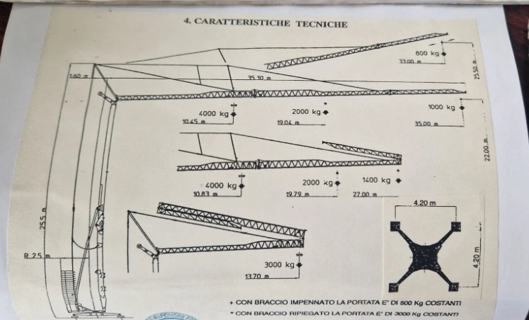 Lungime brat 35 metrii, inaltime 22 metrii, capacitate de incarcare 4000 kg, contragreutati din beton, pretul nu contine tva.